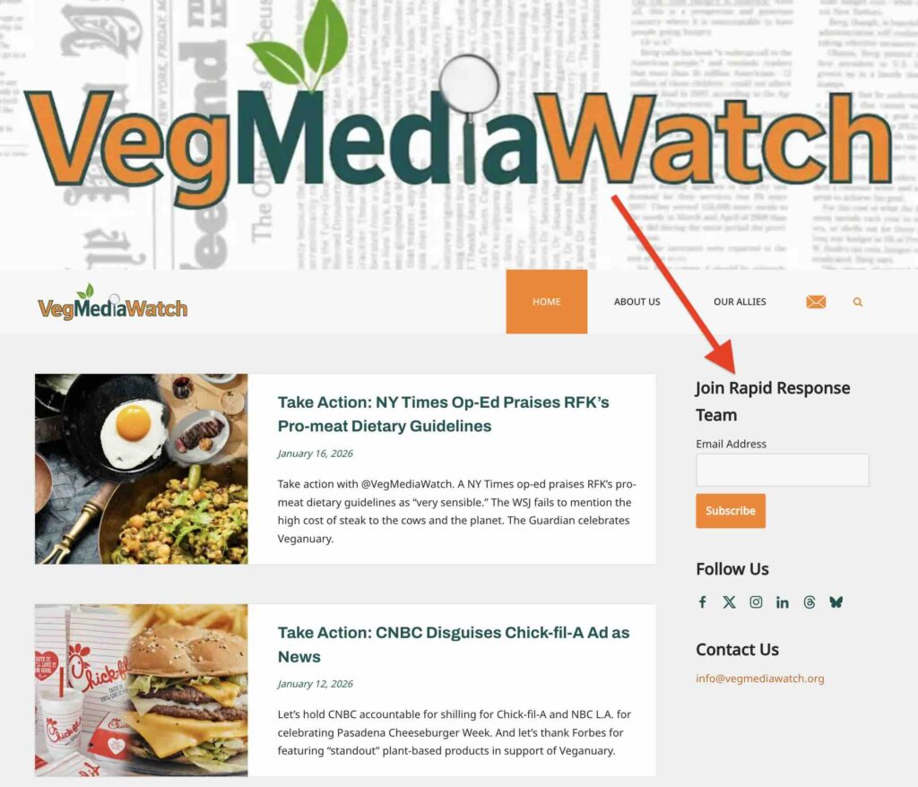 You can also help by following @VegMediaWatch and sharing or commenting on its posts on X, LinkedIn, Instagram, Facebook, Threads and BlueSky.